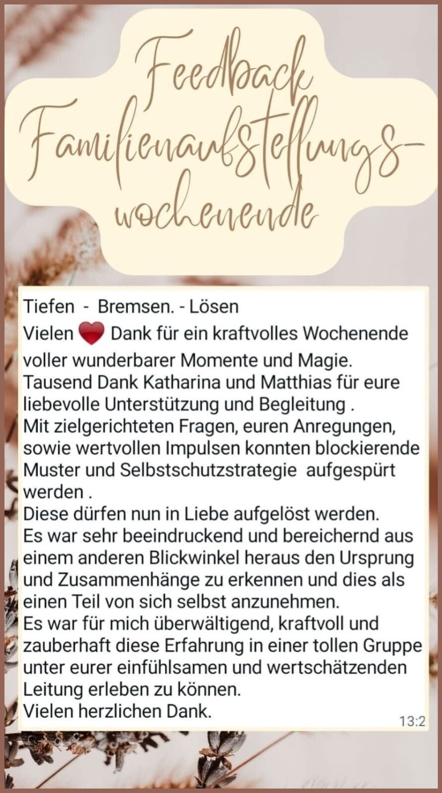 Feedback Intense Healing Weekend Family Constellations: